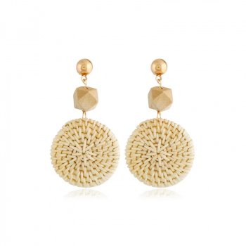 Bohemian Round Straw Woven Dangle Earrings