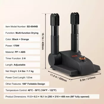 Foldable Shoe and Boot Dryer with Timer & UV – Dries 2 Pairs, Portable Design