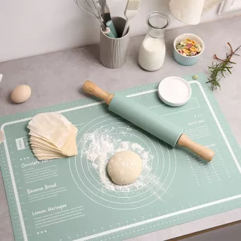 Silicone Kneading Pad & Non-Stick Rolling Pin Set – Anti-Slip Pastry Board for Pizza, Bread, & Pastry Baking