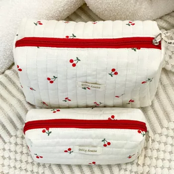 Quilted Cotton Travel Bag - Retro Cherry Cosmetic & Makeup Storage Case