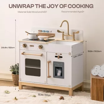Wooden Kids Play Kitchen with Lights and Sounds - Perfect Gift for 3+