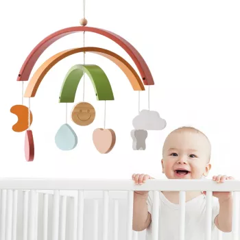 Wooden Rainbow Baby Bed Bell Mobile