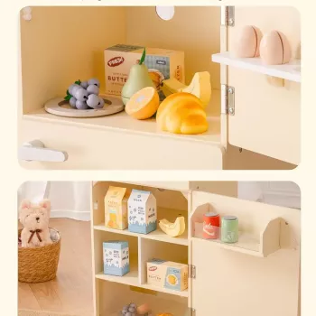 Wooden Toy Refrigerator Play Kitchen Set with Accessories for Kids